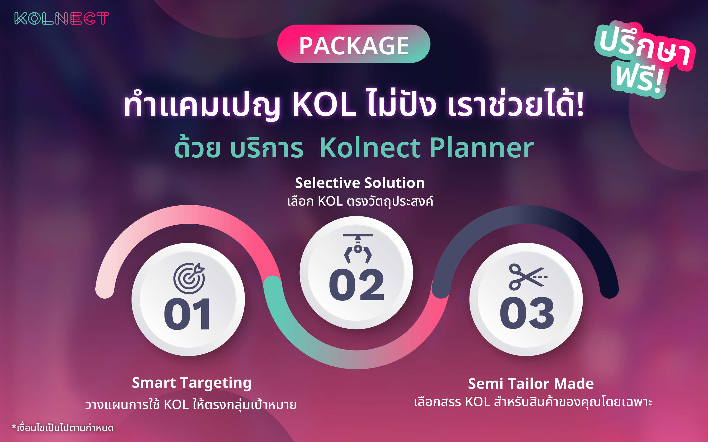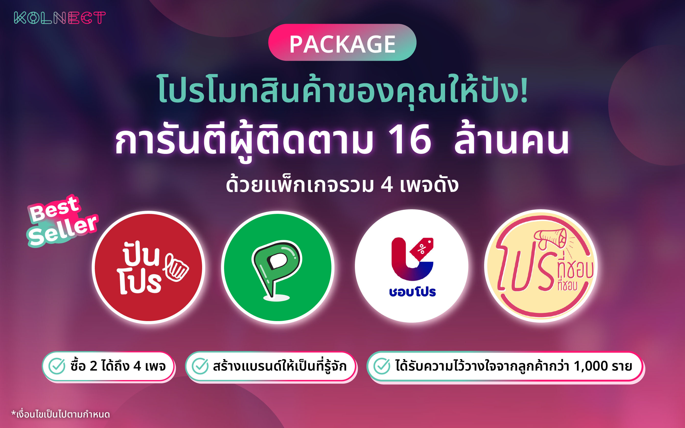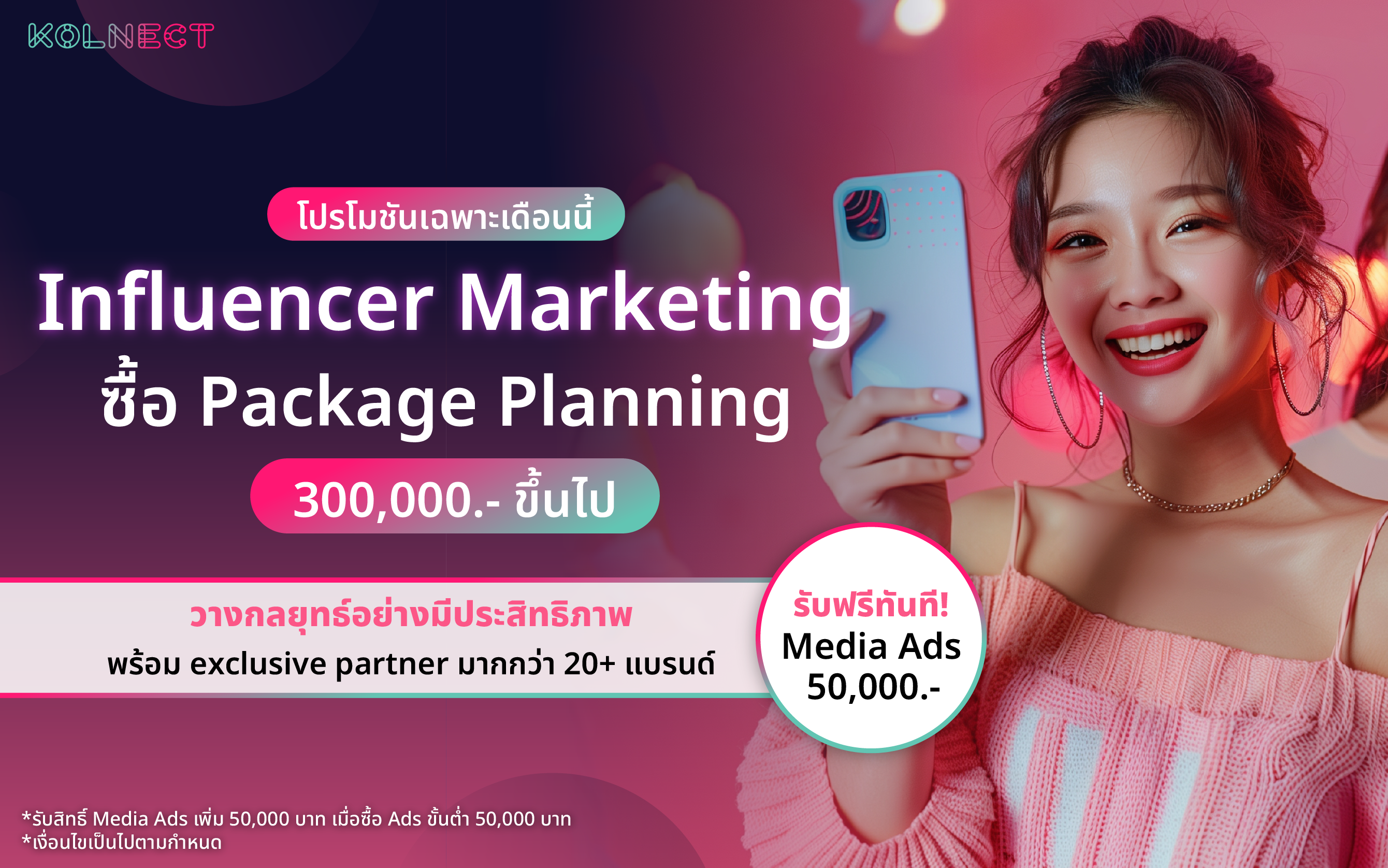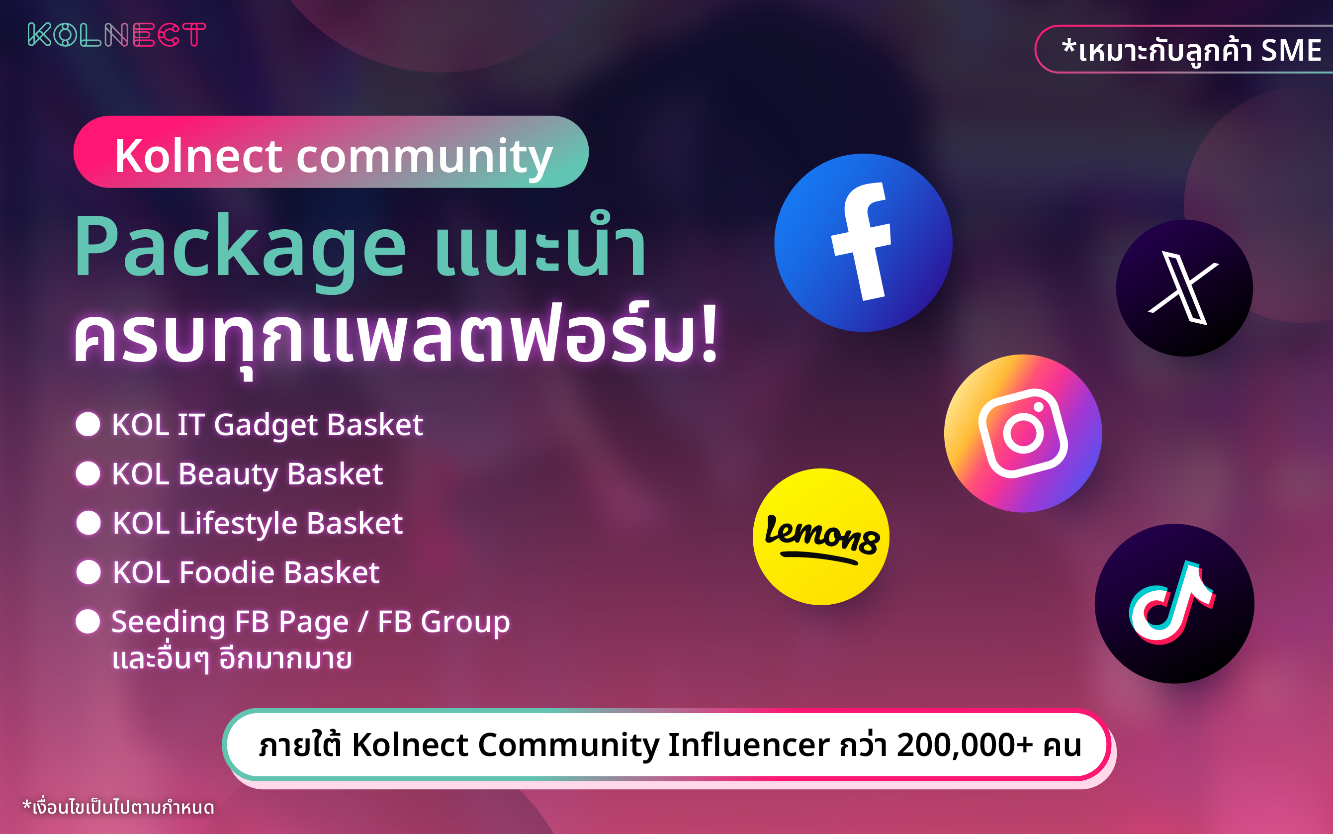 บริการ Influencer Marketing แบบครบวงจร เพื่อสร้างการเติบโตให้แบรนด์ของคุณอย่างยั่งยืน ด้วยประสบการณ์มากกว่า 10 ปี ทีมงานของเราพร้อมช่วยแบรนด์ของคุณประสบความสำเร็จอย่างยั่งยืน เรามีแพ็กเกจหลากหลายที่ออกแบบมาเพื่อตอบโจทย์เฉพาะสำหรับแต่ละแบรนด์ ไม่ว่าจะเป็นแพ็กเกจพิเศษที่การันตีการเข้าถึงผู้ติดตามกว่า 16 ล้านคน ด้วยการรวม 4 เพจโปรโมชั่นชั้นนำ หรือแพ็กเกจ Influencer Community ที่ครบครันทุกแพลตฟอร์ม ทั้ง TikTok, Facebook, Instagram, X และแพลตฟอร์มน้องใหม่อย่าง Lemon8 เราก็มีบริการเช่นกัน เราเชื่อมต่อกับ Influencer กว่า 200,000 คน ครอบคลุมทุกระดับตั้งแต่ Nano ไปจนถึง Celebrity และมีทีม SD ผู้เชี่ยวชาญที่พร้อมทดลองใช้ รับรีวิว และโปรโมทสินค้า นอกจากนี้ยังมี Planner ที่วางกลยุทธ์ให้แคมเปญของแบรนด์โดดเด่นและเข้าถึงกลุ่มเป้าหมายได้อย่างมีประสิทธิภาพ เราคัดสรร Influencer ที่เหมาะสมที่สุดเพื่อสร้างสรรค์คอนเทนต์ที่โดนใจกลุ่มเป้าหมาย และติดตามผลลัพธ์อย่างใกล้ชิด เราพร้อมให้คำปรึกษาฟรีและมีโปรโมชั่นพิเศษสำหรับลูกค้าเก่าและลูกค้าใหม่ ร่วมเป็นส่วนหนึ่งของความสำเร็จกับ Kolnect SD ที่ได้รับความไว้วางใจจากลูกค้ามากกว่า 1,000 ราย #InfluencerMarketing #DigitalMarketing